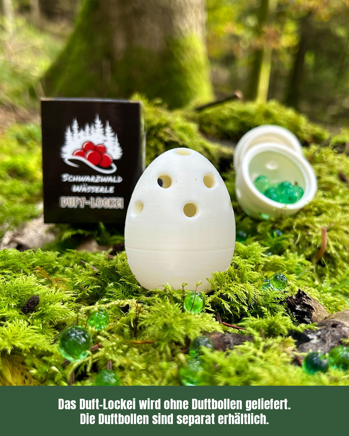 Du suchst einen Köder, der mehr kann? Das Duft-Lockei ist genau das, was Du brauchst. Es kombiniert einen sichtbaren Köder, der den Jagdinstinkt von Raubwild weckt, mit einem intensiven Duft, der durch die Luft strömt und dieses unwiderstehlich anzieht. So machst Du Deine Fallen zum Magnet für Wild – und du erhöhst deutlich Deine Erfolgsquote.